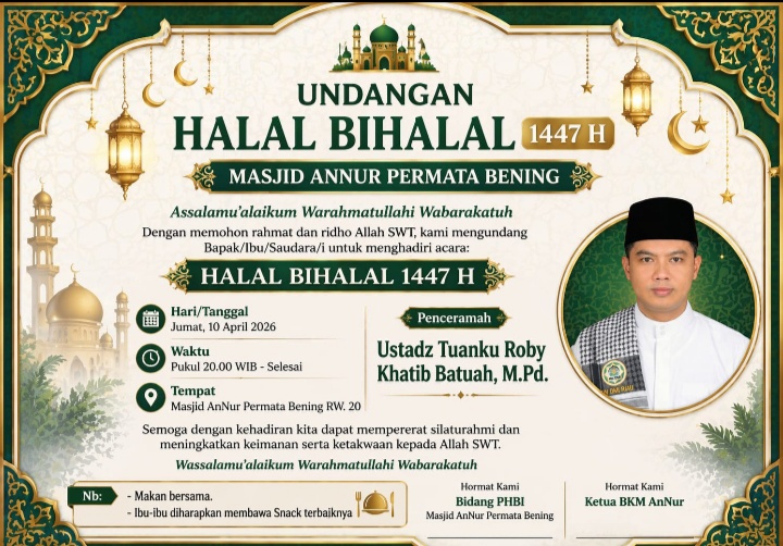 Liputanperistiwa.com Pekanbaru – Dalam menjalin silaturahmii dan mempererat kebersamaan seluruh warga, Badan Kemakmuran Mesjid (BKM) Mesjid An Nur RW 20 Perumahan Permata Bening, Kelurahan Sidomulyo Barat, Kecamatan Tuah Madani mengadakan Halal Bihalal, Jumat (10/4/2026) malam.